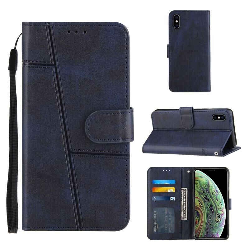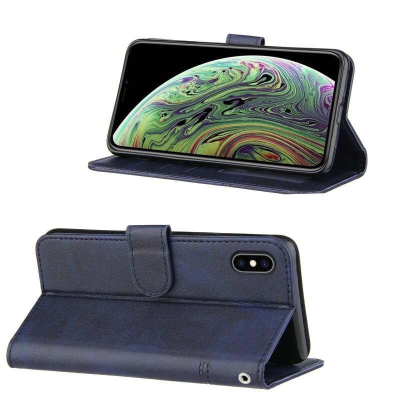 Θήκη για iPhone XS Max από δέρμα με οριζόντιο άνοιγμα, υφή μοσχαρίσιου δέρματος, ραφές, με πόρπη, θήκη για κάρτες, πορτοφόλι και λουρί (Μαύρο)
