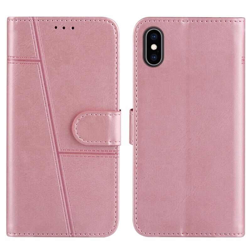 Θήκη για iPhone XS Max από δέρμα με οριζόντιο άνοιγμα, υφή μοσχαρίσιου δέρματος, ραφές, με πόρπη, θήκη για κάρτες, πορτοφόλι και λουρί (Μαύρο)