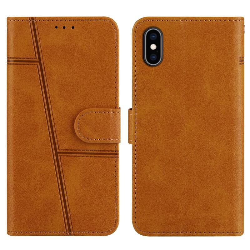 Θήκη για iPhone XS Max από δέρμα με οριζόντιο άνοιγμα, υφή μοσχαρίσιου δέρματος, ραφές, με πόρπη, θήκη για κάρτες, πορτοφόλι και λουρί (Μαύρο)
