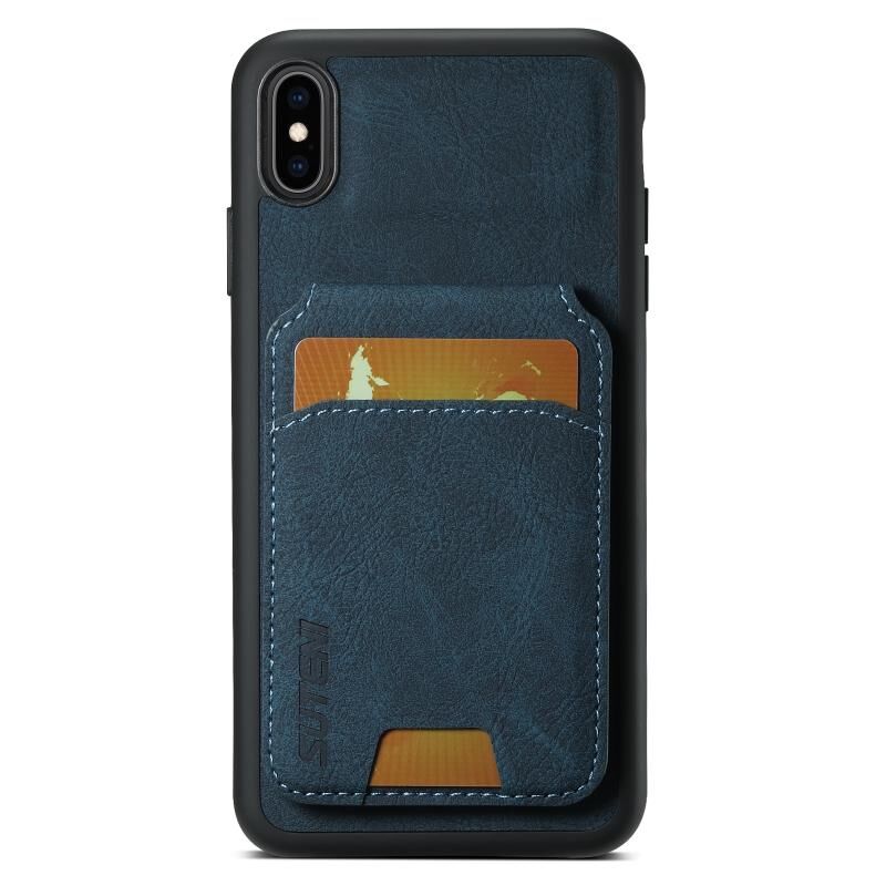 Θήκη κινητού τηλεφώνου για iPhone XS Max Suteni H02 από δέρμα Lychee με θήκη για κάρτες και βάση (Μαύρο) (Μπλε)