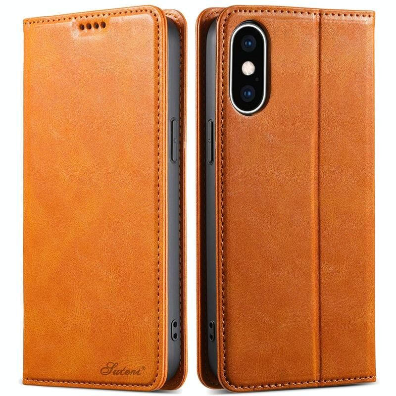 Θήκη τηλεφώνου από δέρμα με κερί λαδιού Suteni J02 για iPhone XS Max (Μαύρο) (Suteni)