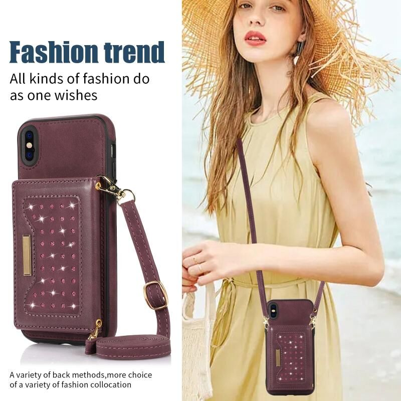Θήκη τηλεφώνου από δέρμα με τριπλή αναδίπλωση και προστασία RFID για iPhone XS Max με κορδόνι (Μαύρο)