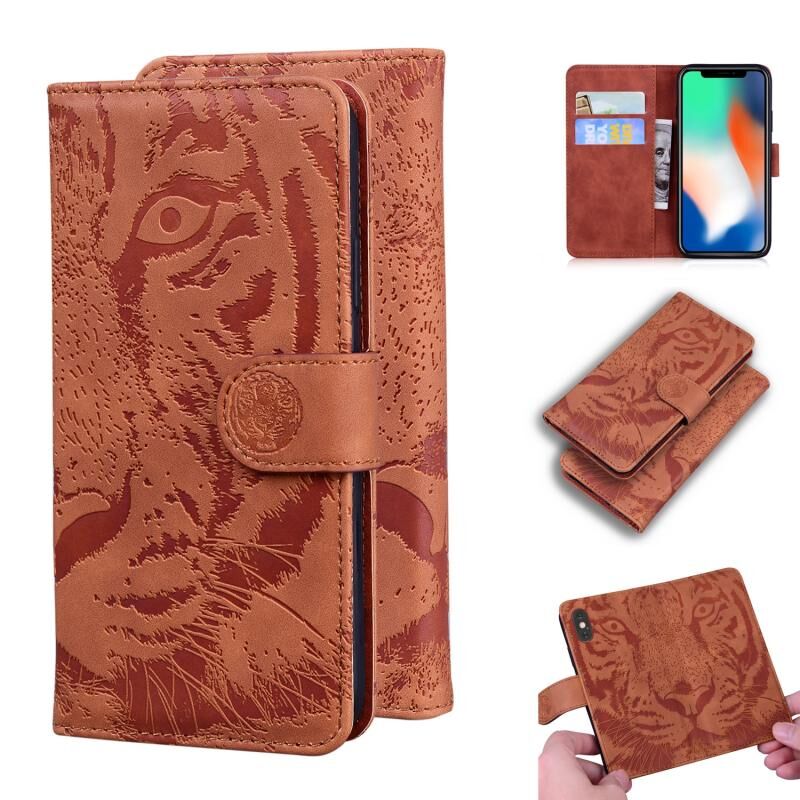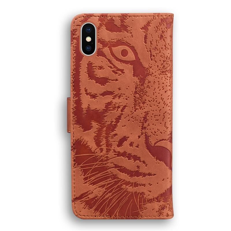 Θήκη για iPhone XS Max από δέρμα με οριζόντιο άνοιγμα, ανάγλυφο μοτίβο τίγρης, με θήκη και υποδοχές για κάρτες & πορτοφόλι (Κόκκινο)