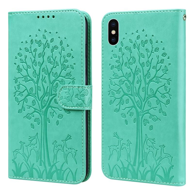 Θήκη τηλεφώνου από δέρμα με οριζόντιο άνοιγμα για iPhone XS Max με σχέδιο δέντρου & ελαφιού, με εκτύπωση (Μωβ)