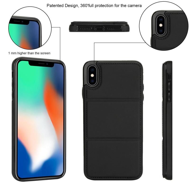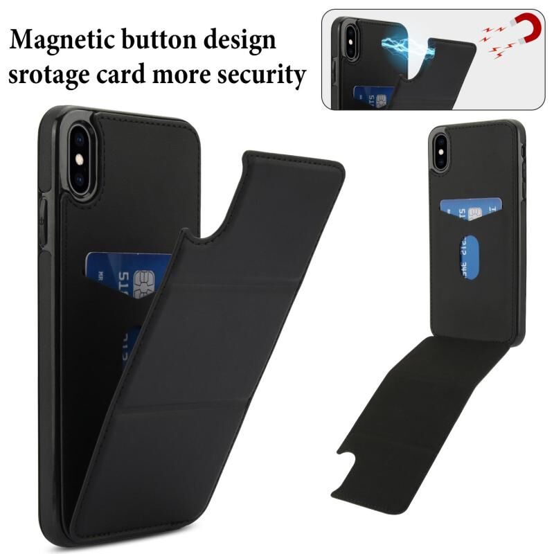 Θήκη τηλεφώνου από δέρμα με τριπλή πτυχή και θήκη για κάρτες για iPhone XS Max (Μαύρο)