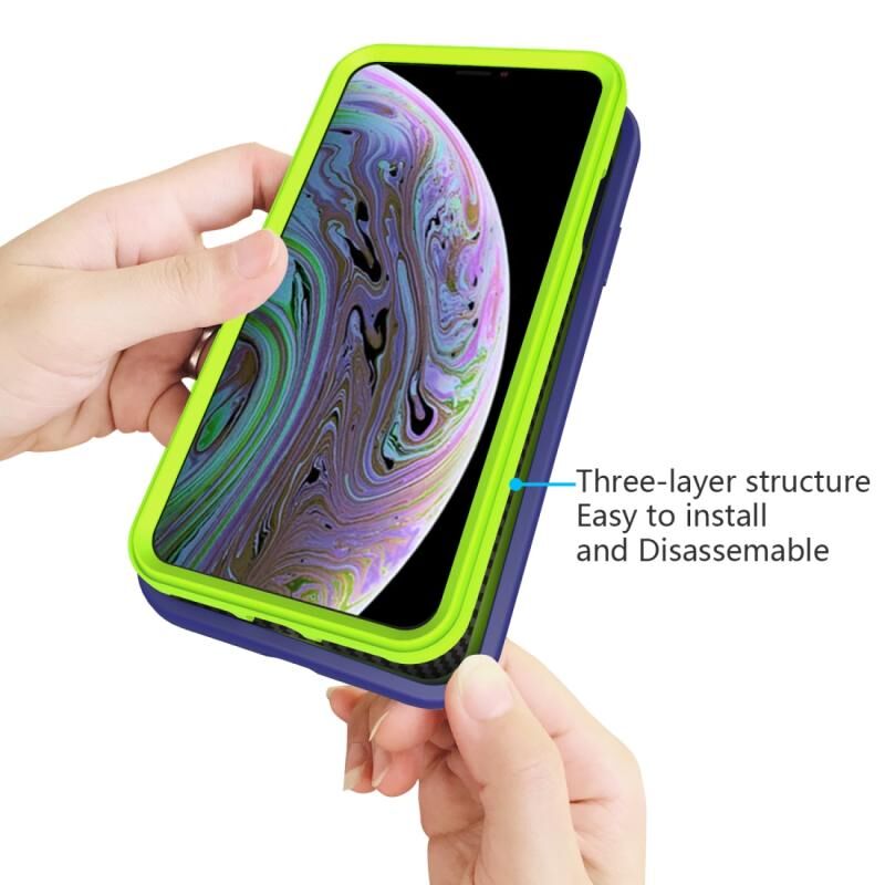 Θήκη Προστασίας 3 σε 1 από Σιλικόνη+PC για iPhone XS Max με Μοτίβο Κυμάτων (Navy+Olivine)