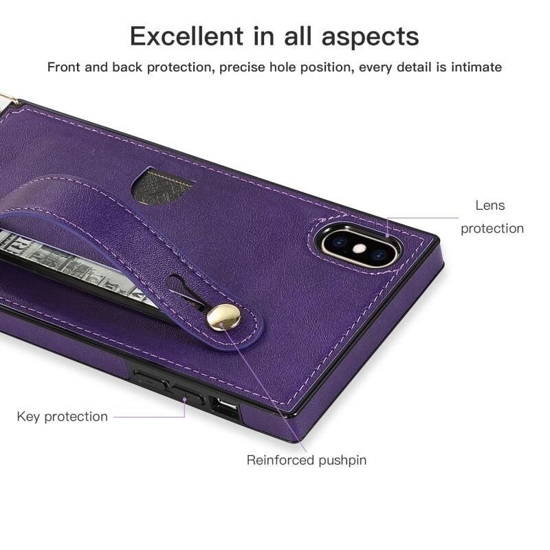 Θήκη προστασίας για iPhone XS Max με λουρί καρπού, κατασκευασμένη από PU+TPU, ανθεκτική σε κρούσεις, με λουρί σώματος, βάση στήριξης και θήκη για κάρτες (Χρυσό Ρόδινο)
