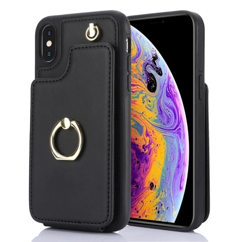 Θήκη κινητού τηλεφώνου με υφή δέρματος για iPhone XS Max YM005 με μακρύ κορδόνι (Μαύρο)