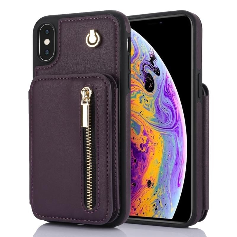 Θήκη κινητού τηλεφώνου με υφή δέρματος και φερμουάρ για iPhone XS Max YM006 με διπλό κορδόνι (Σκούρο Μωβ)