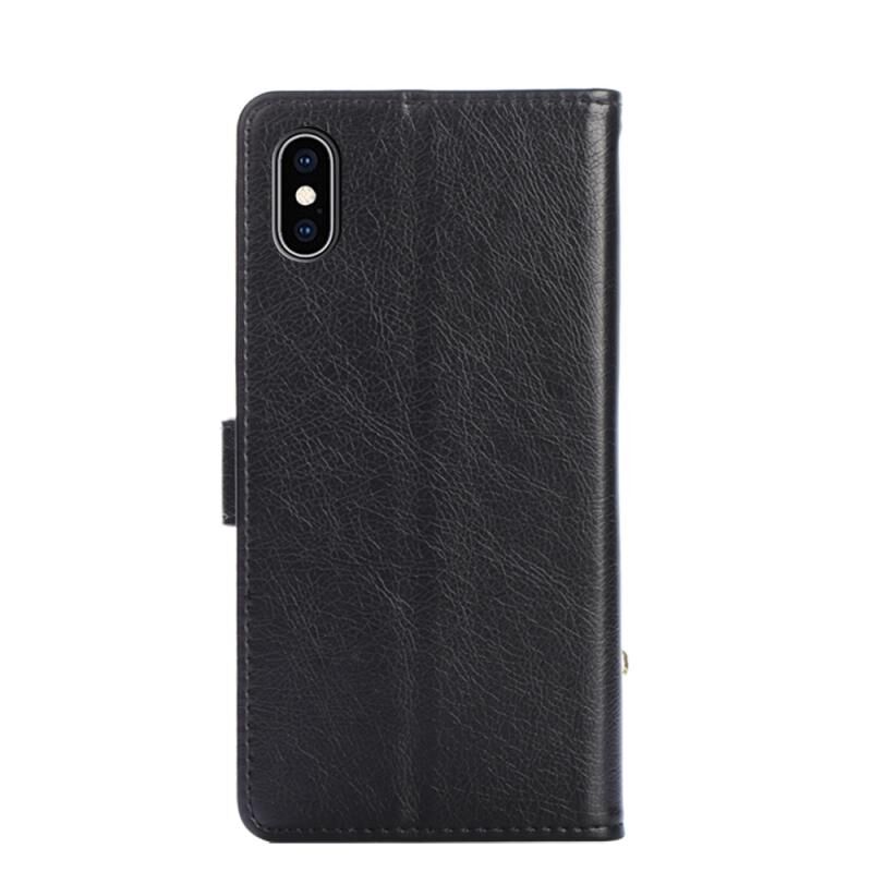 Θήκη για iPhone XS Max, Δερμάτινη θήκη με οριζόντιο άνοιγμα, PU + TPU, με θήκη, υποδοχή κάρτας, πορτοφόλι & λουρί (Μαύρο)