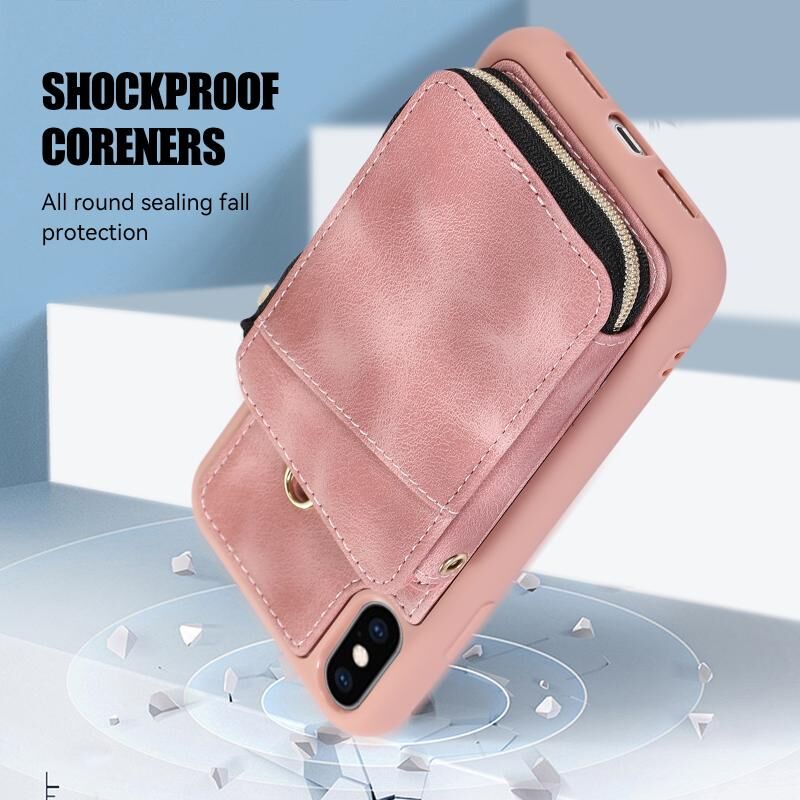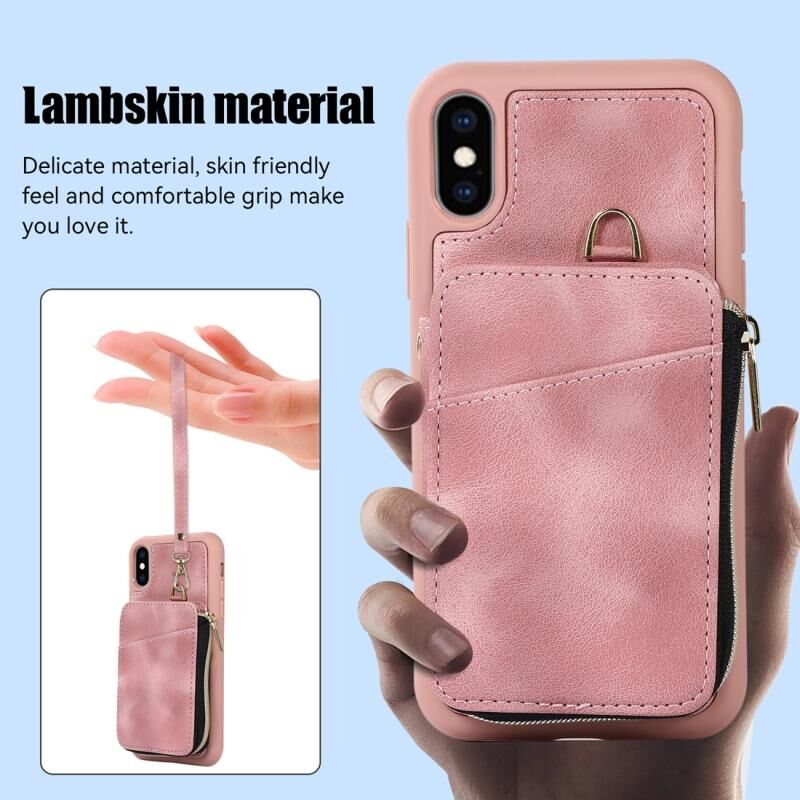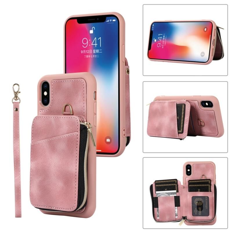 For iPhone XS Max Zipper Card Bag Back Cover Phone Case(Pink)