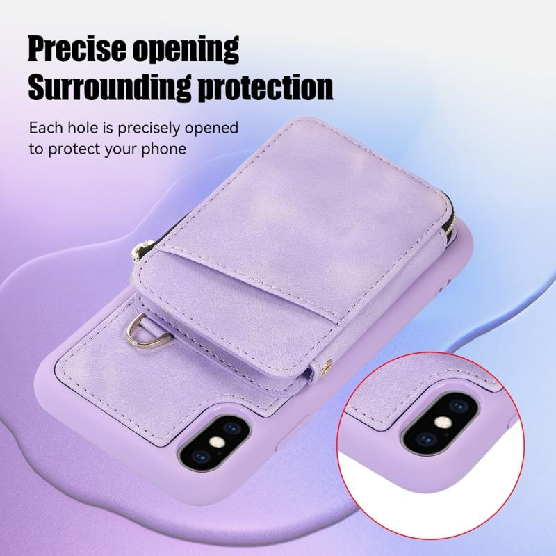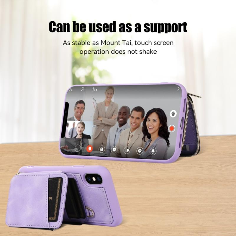For iPhone XS Max Zipper Card Bag Back Cover Phone Case(Purple)