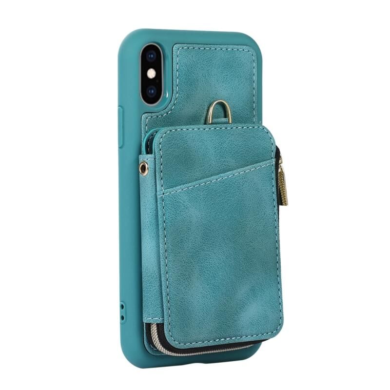 For iPhone XS Max Zipper Card Bag Back Cover Phone Case(Turquoise)