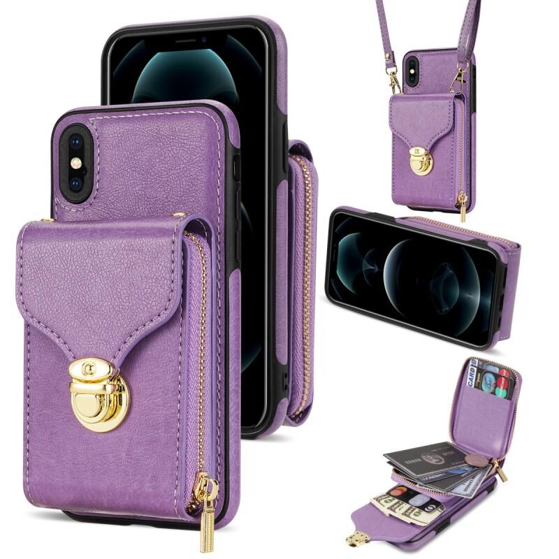 For iPhone XS Max Zipper Hardware Card Wallet Phone Case(Purple)