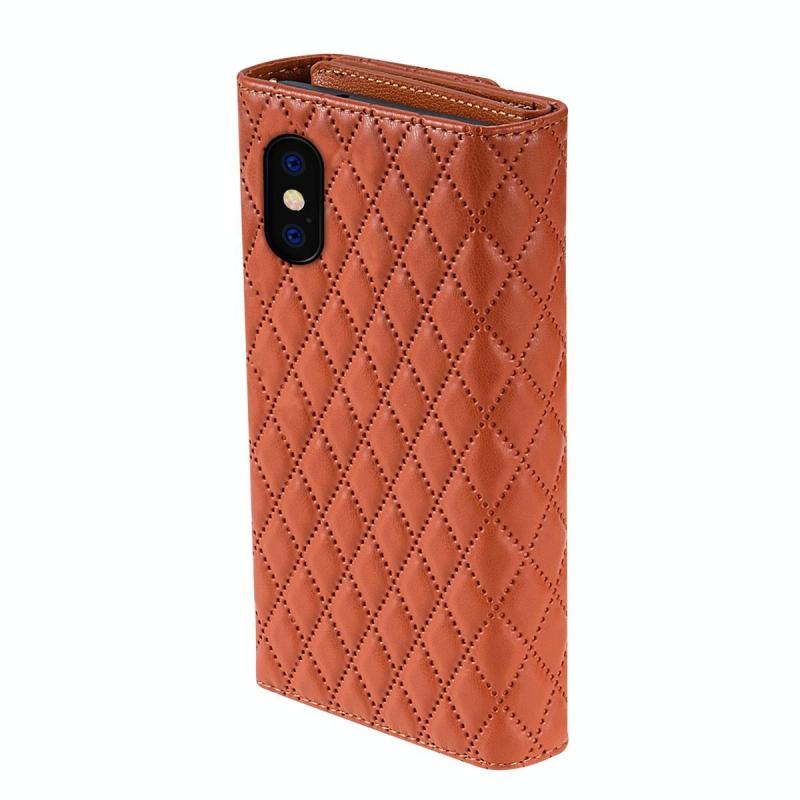 For iPhone XS Max Zipper Multi-Card Wallet Rhombic Leather Phone Case(Brown)