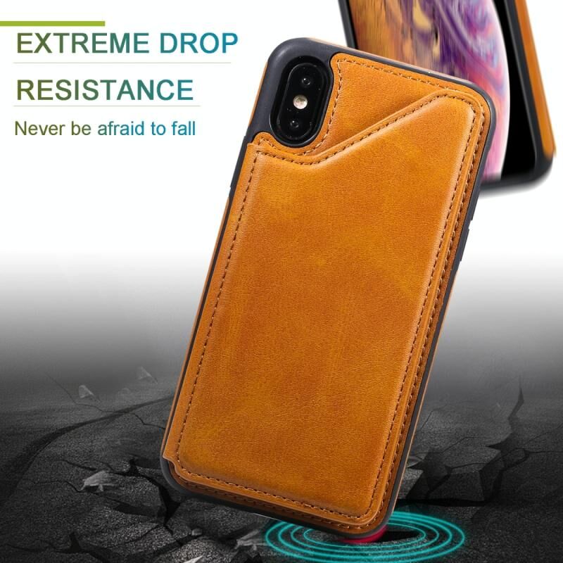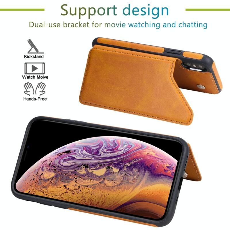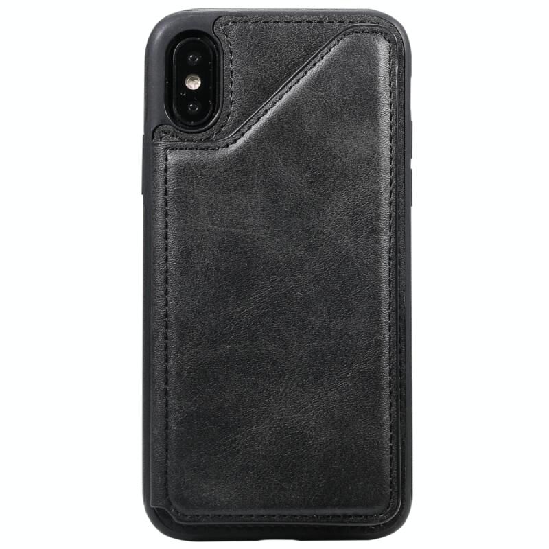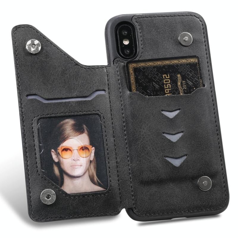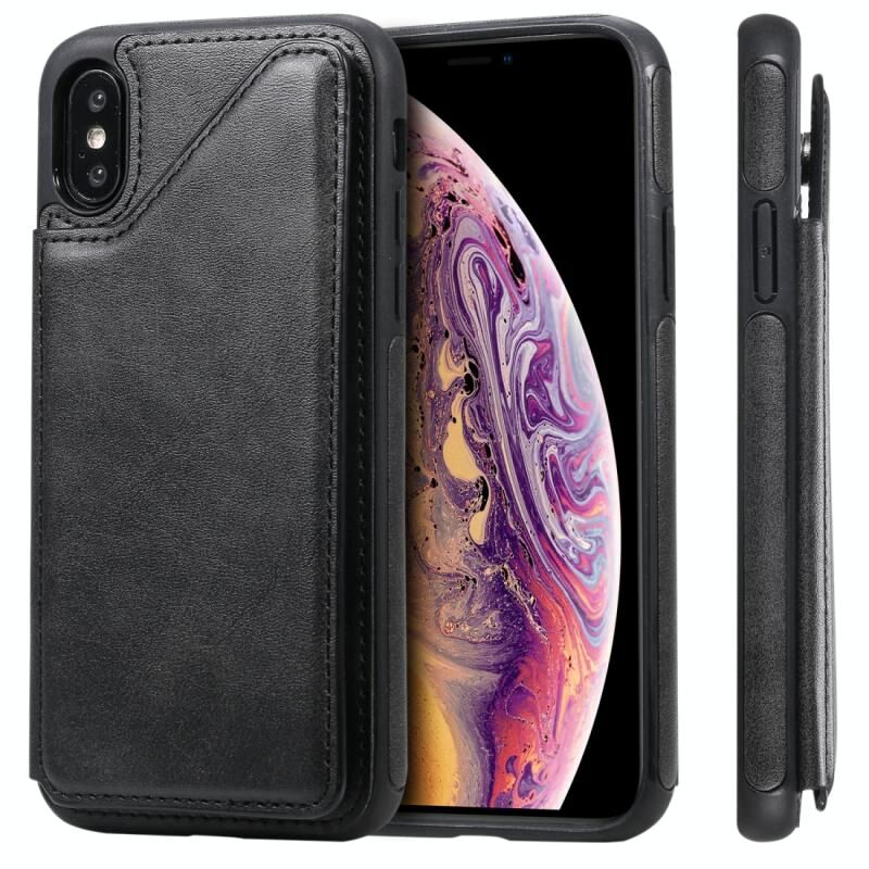 For iPhone XS Shockproof Calf Texture Protective Case with Holder & Card Slots & Frame(Black)