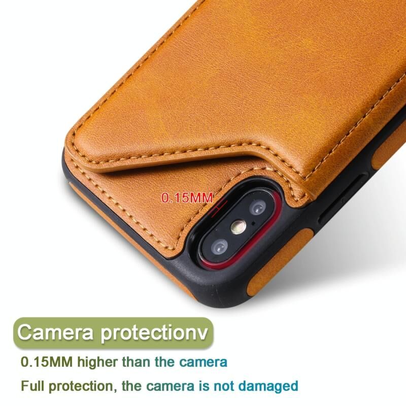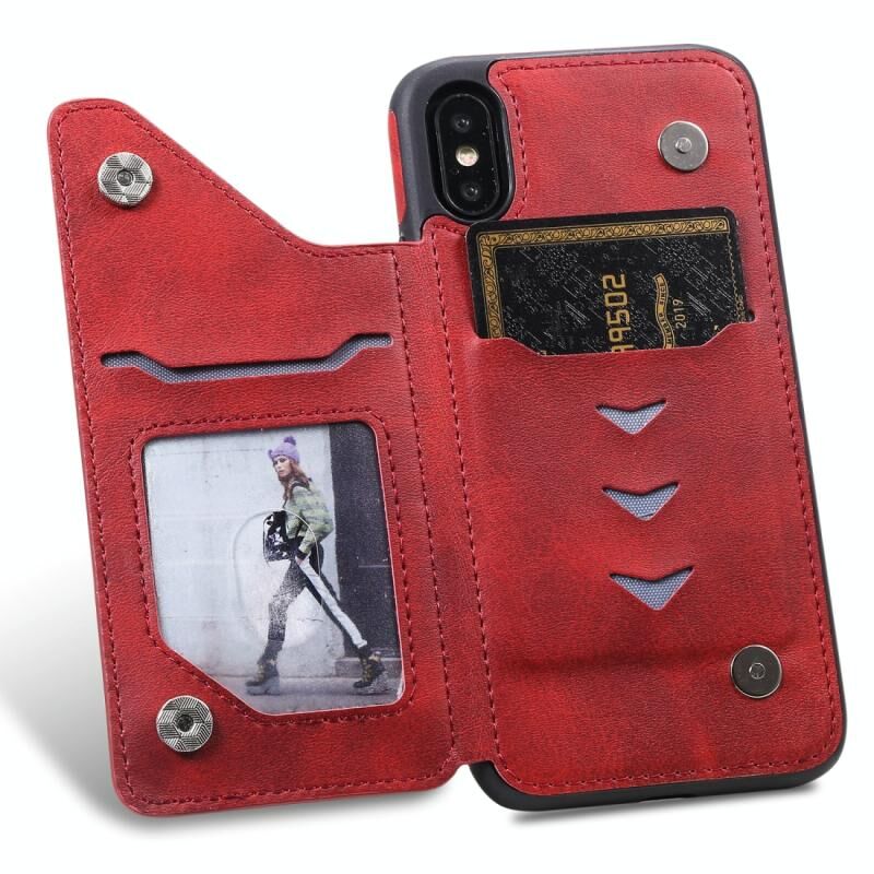 For iPhone XS Shockproof Calf Texture Protective Case with Holder & Card Slots & Frame(Red)