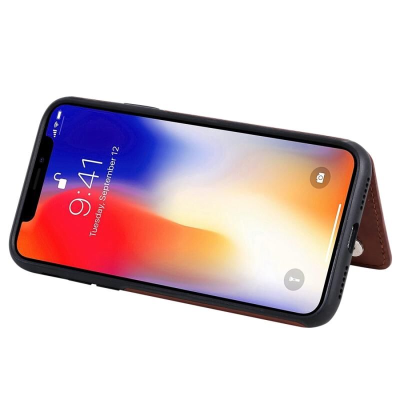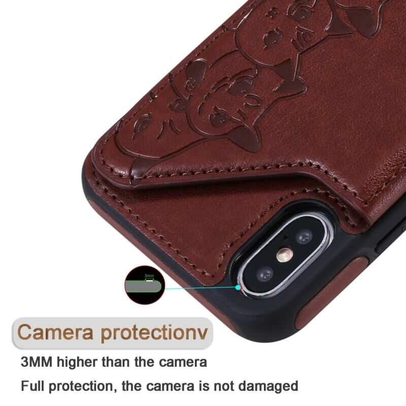 For iPhone XS Six Cats Embossing Pattern Protective Case with Holder & Card Slots & Photo Frame(Brown)