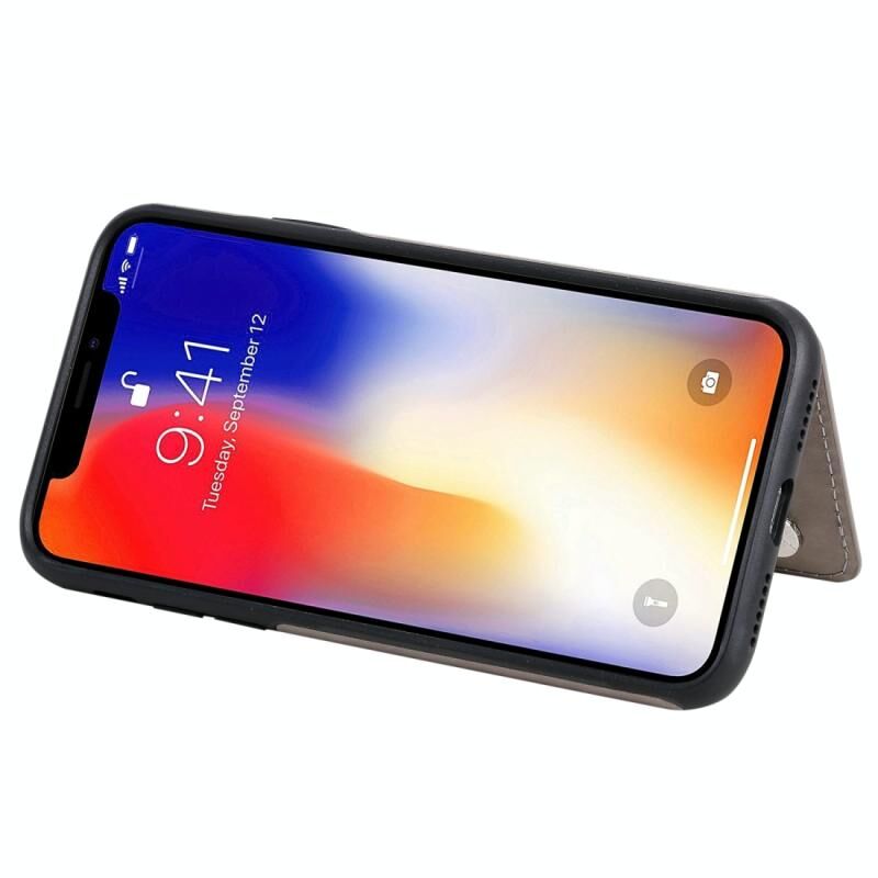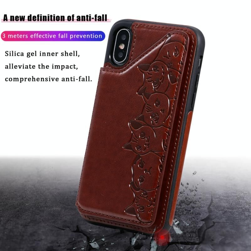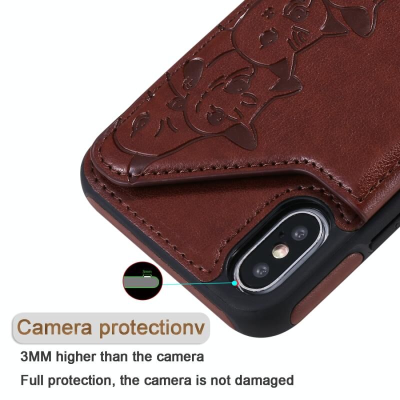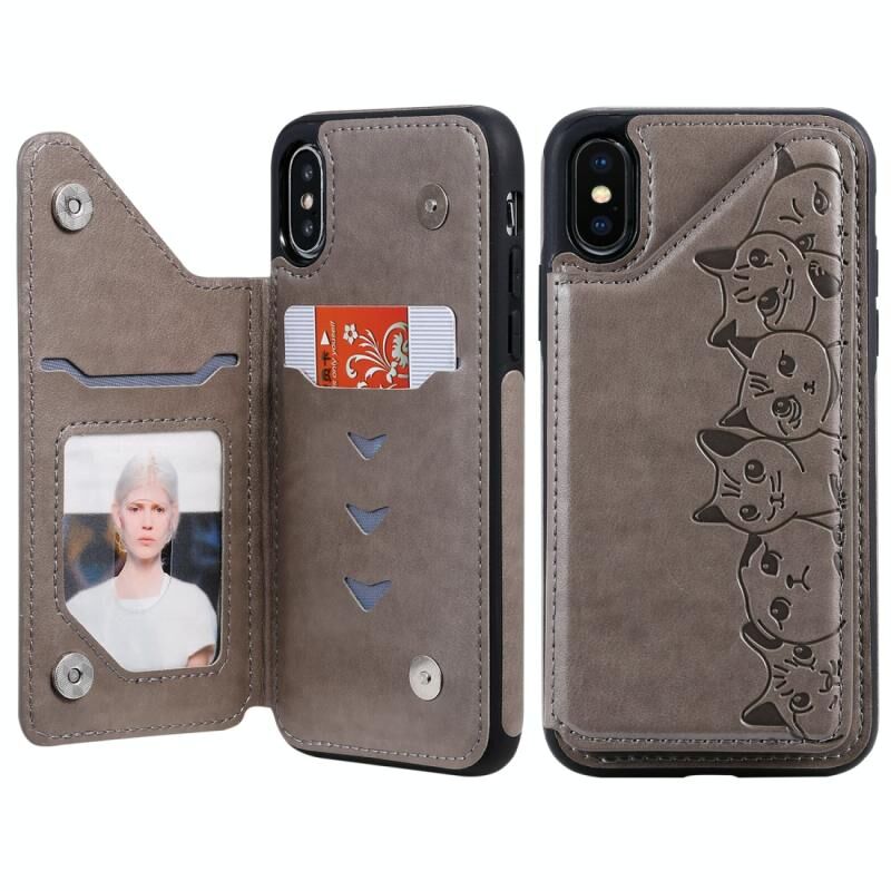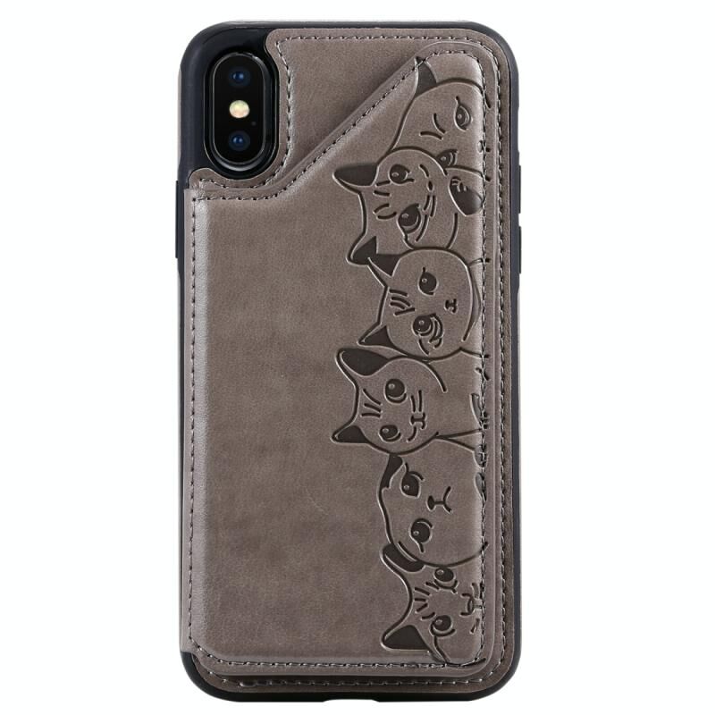 For iPhone XS Six Cats Embossing Pattern Protective Case with Holder & Card Slots & Photo Frame(Grey)