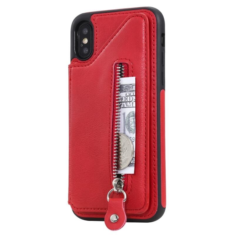 Θήκη προστασίας για iPhone XS, μονόχρωμη, με διπλή αγκράφα και φερμουάρ, αντικραδασμική (Χρυσορόδινο)