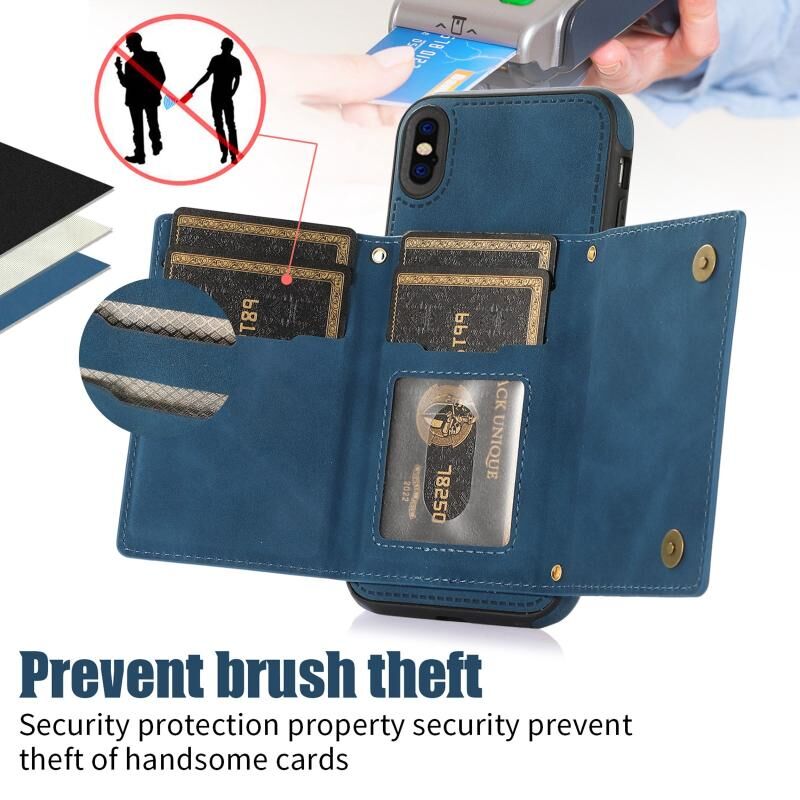 Θήκη τηλεφώνου από δέρμα με τριπλή αναδίπλωση και προστασία RFID για iPhone XS με κορδόνι (Μαύρο)
