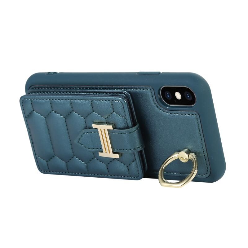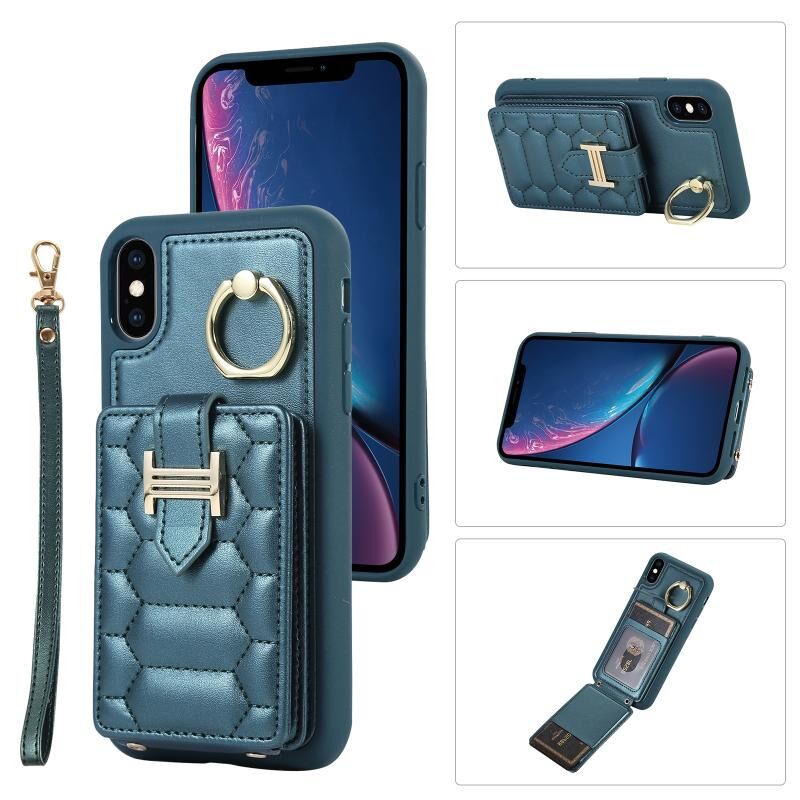 Θήκη τηλεφώνου για iPhone XS με κάθετη τσέπη για κάρτες, δακτύλιο στήριξης και διπλό κορδόνι (Σκούρο πράσινο)