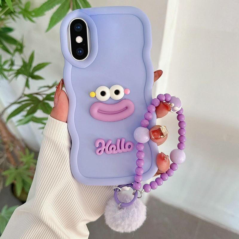 Θήκη τηλεφώνου TPU με αλυσίδα χαντρών και σχέδιο αστείου λουκάνικου για iPhone XS / X (Μωβ)