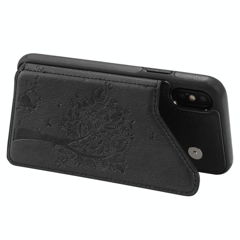 Θήκη προστασίας για iPhone XS / X με ανάγλυφο σχέδιο δέντρου γάτας, αντικραδασμική με θήκες για κάρτες & κορνίζα φωτογραφιών & βάση στήριξης (Μαύρο)