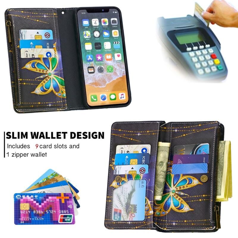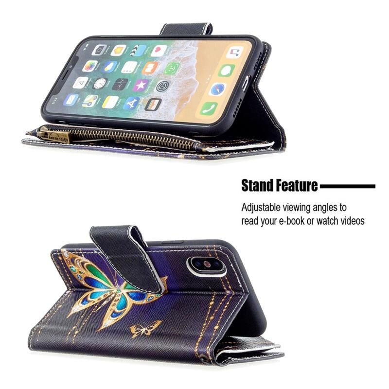 For iPhone XS / X Colored Drawing Pattern Zipper Horizontal Flip Leather Case with Holder & Card Slots & Wallet(Big Butterfly)