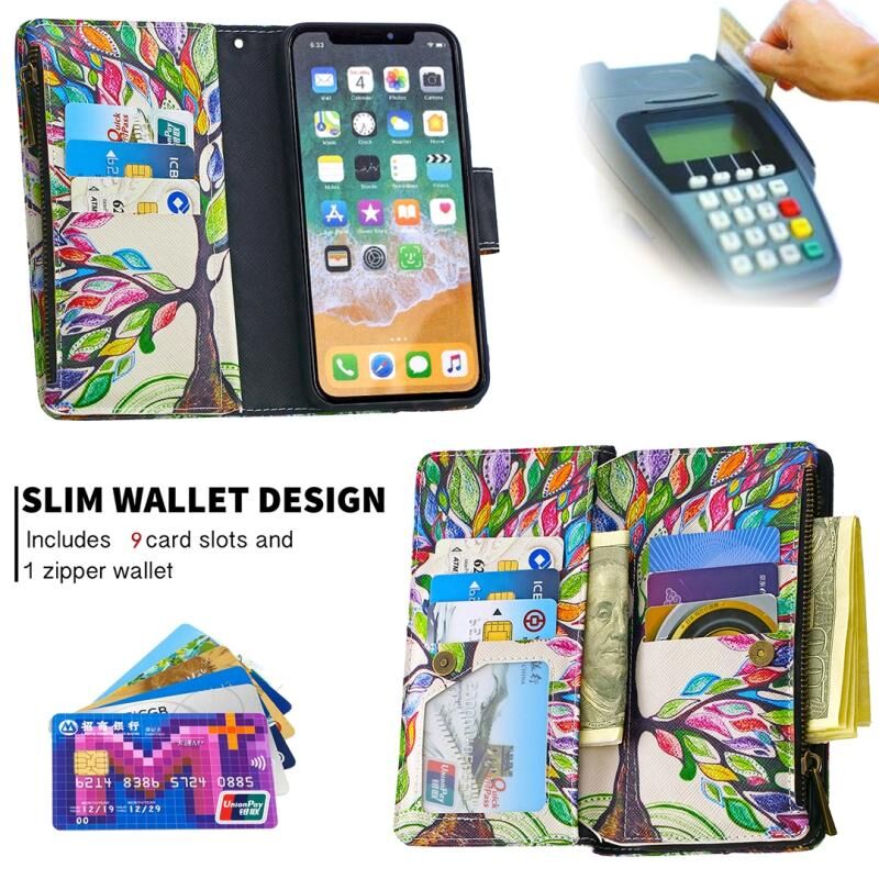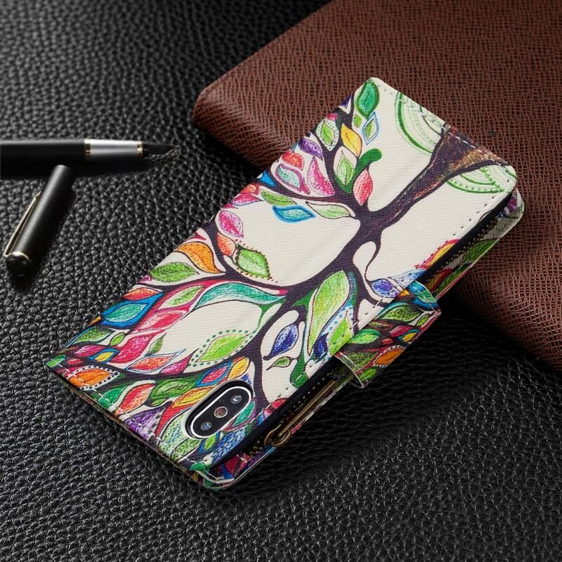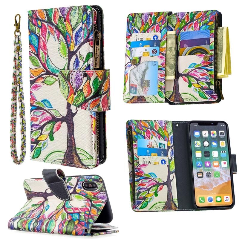For iPhone XS / X Colored Drawing Pattern Zipper Horizontal Flip Leather Case with Holder & Card Slots & Wallet(Tree)