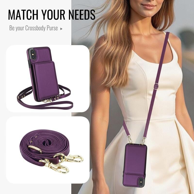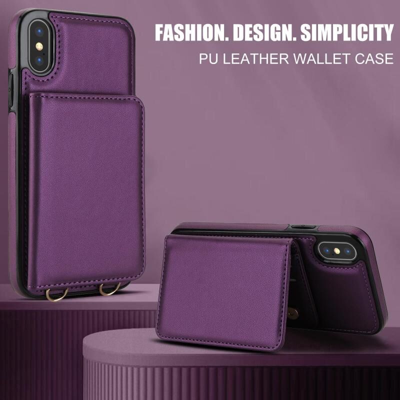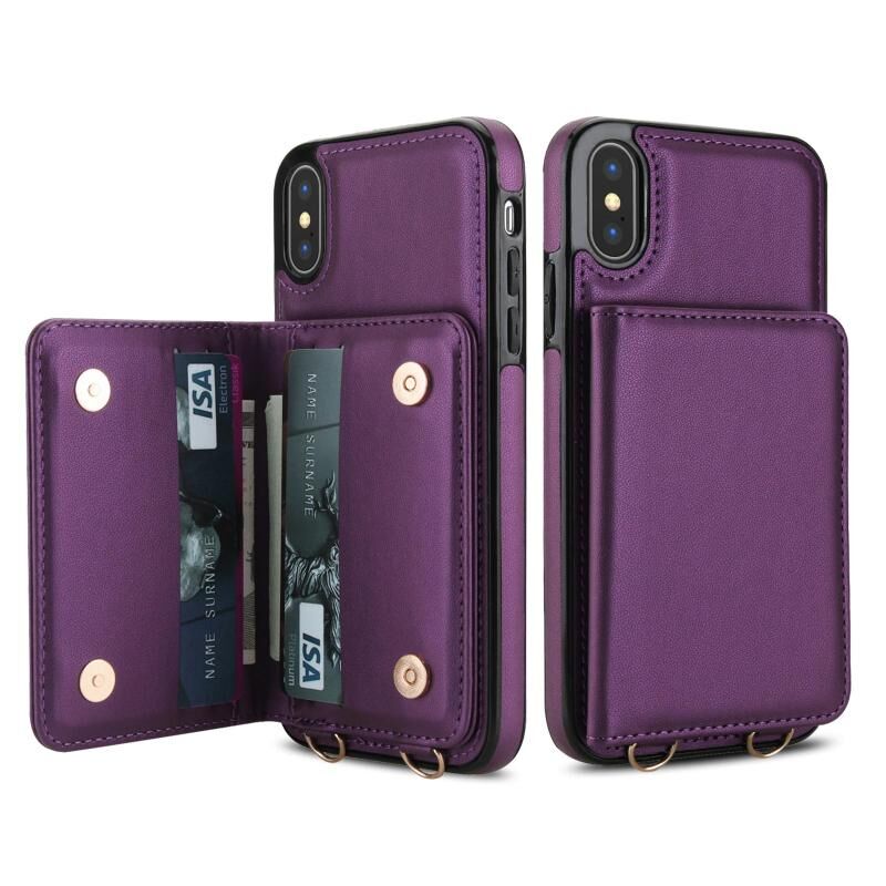 For iPhone XS / X Crossbody Dual-buckle Wallet RFID Back Leather Phone Case(Dark Purple)