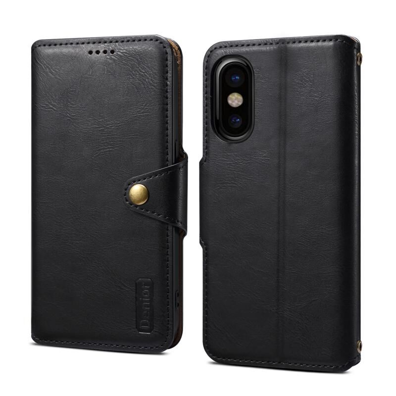 Θήκη τηλεφώνου από δέρμα με υφή δέρματος αγελάδας Denior σε στυλ πορτοφολιού για iPhone XS / X (Μαύρο) (Denior)
