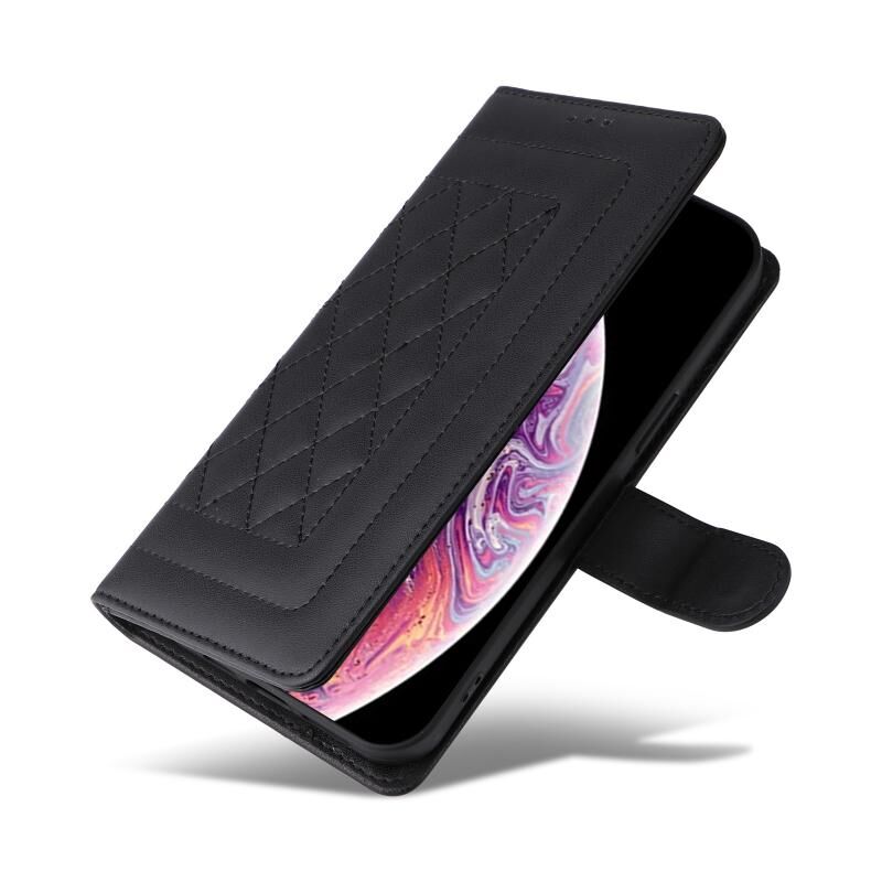 Θήκη τηλεφώνου τύπου flip από δέρμα με διαμαντένιο πλέγμα για iPhone XS / X (Λευκό)