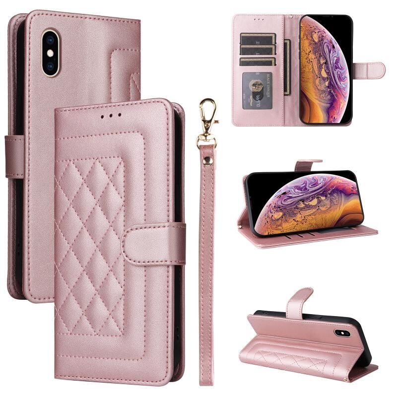 Θήκη τηλεφώνου τύπου flip από δέρμα με διαμαντένιο πλέγμα για iPhone XS / X (Λευκό)