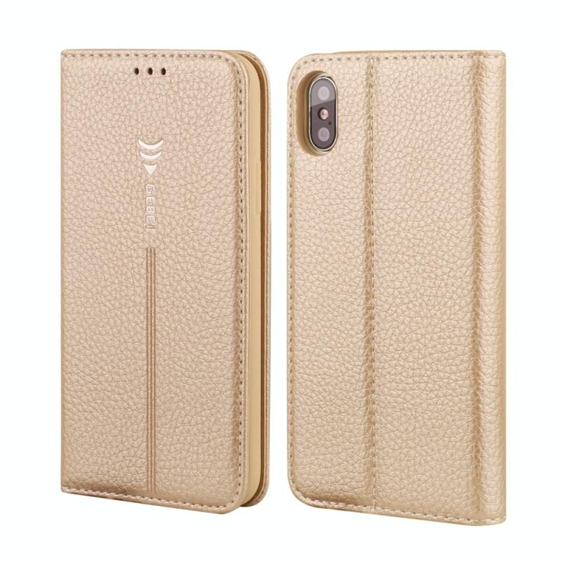 For iPhone XS / X GEBEI PU+TPU Horizontal Flip Protective Case with Holder & Card Slots(Gold) (GEBEI)