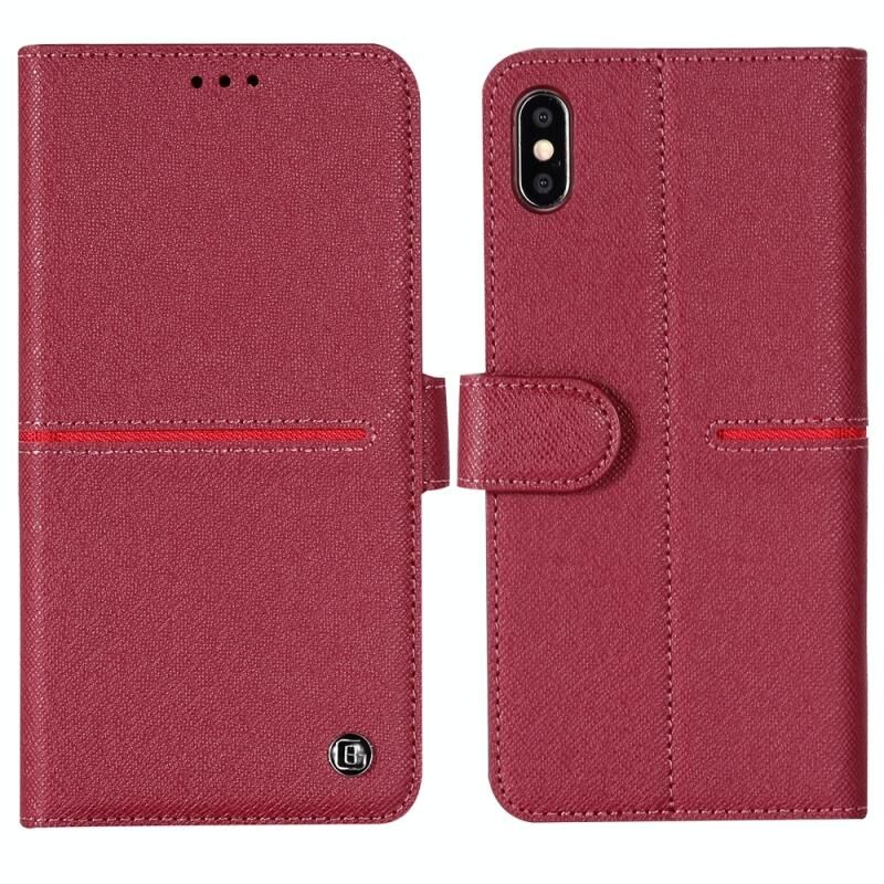 For iPhone XS / X GEBEI Top-grain Leather Horizontal Flip Protective Case with Holder & Card Slots & Wallet & Photo Frame(Red Wine) (GEBEI)