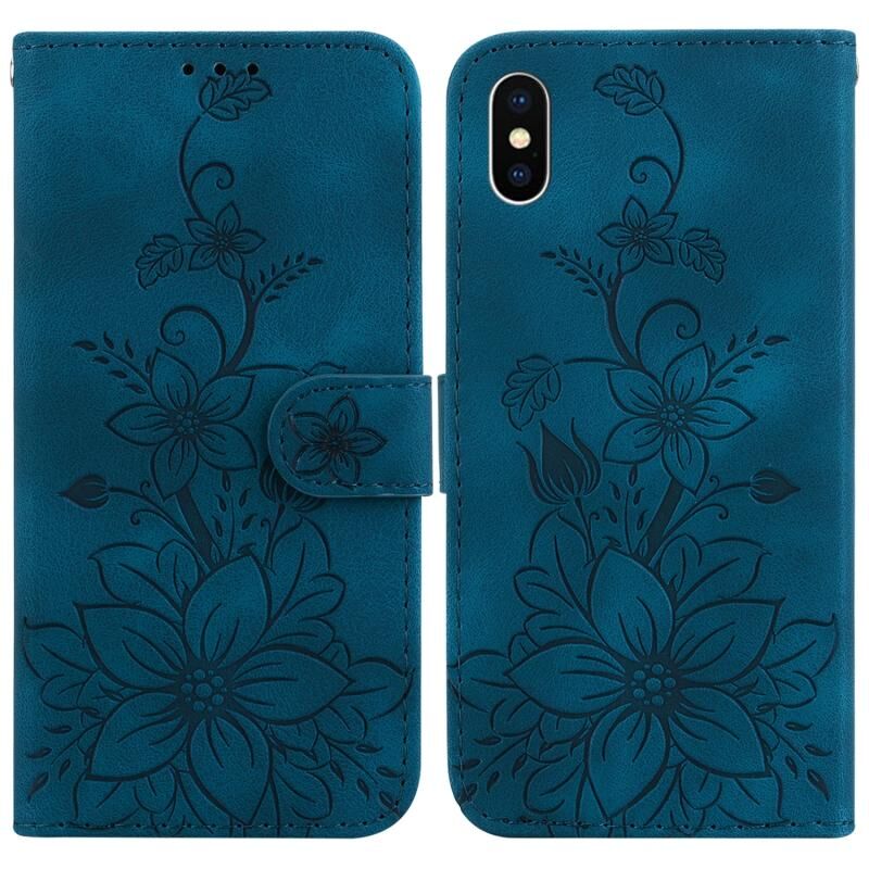 For iPhone XS / X Lily Embossed Leather Phone Case(Dark Blue)