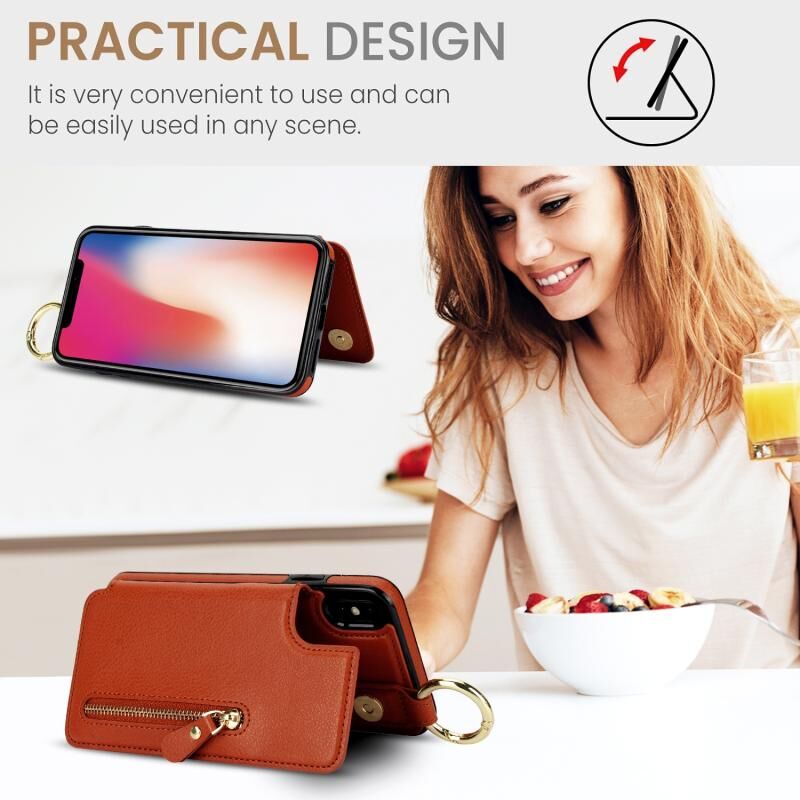 Για iPhone XS / X Litchi υφή φερμουάρ διπλή πόρπη κάρτα τσάντα υπόθεση τηλεφώνου (καφέ)