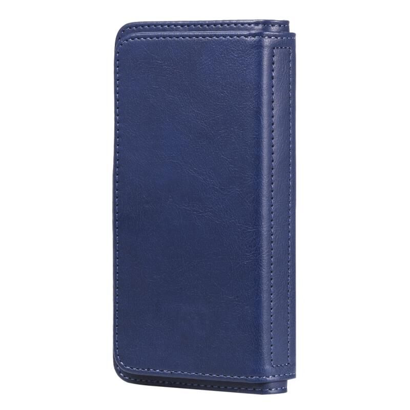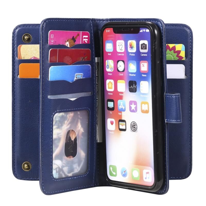 Θήκη για iPhone XS / X, πολυλειτουργική μαγνητική θήκη με αγκράφα από χαλκό, οριζόντια, μονόχρωμη δερμάτινη με 10 υποδοχές για κάρτες, πορτοφόλι, βάση & κορνίζα φωτογραφιών (Σκούρο Μπλε)