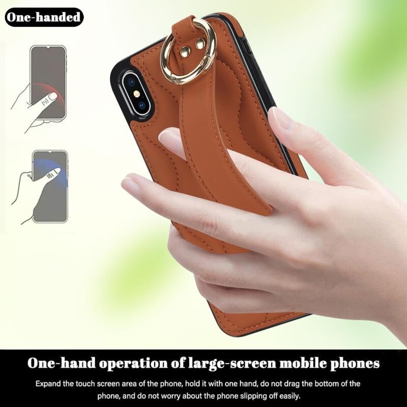 Θήκη τηλεφώνου για iPhone XS / X με αντιολισθητική πλήρη κάλυψη, δακτύλιο και λουρί καρπού (Καφέ)