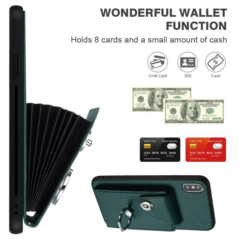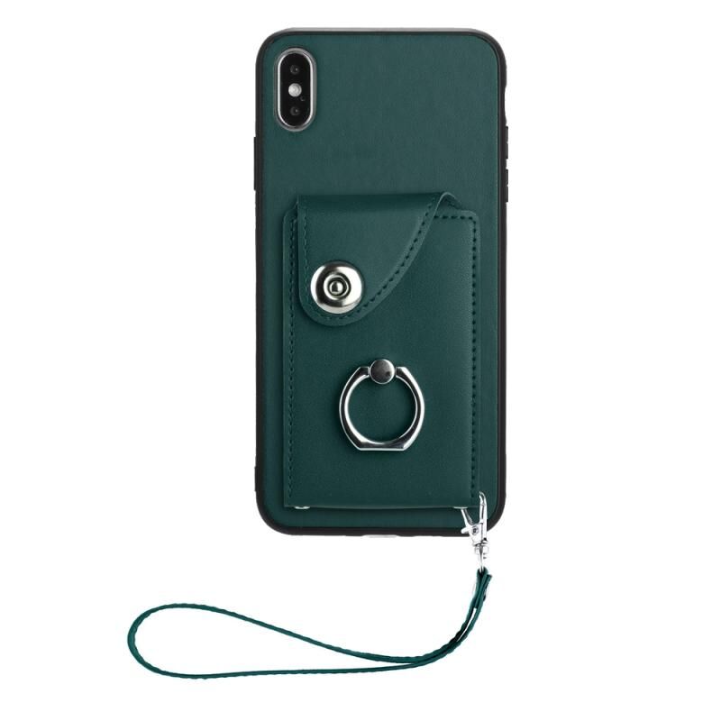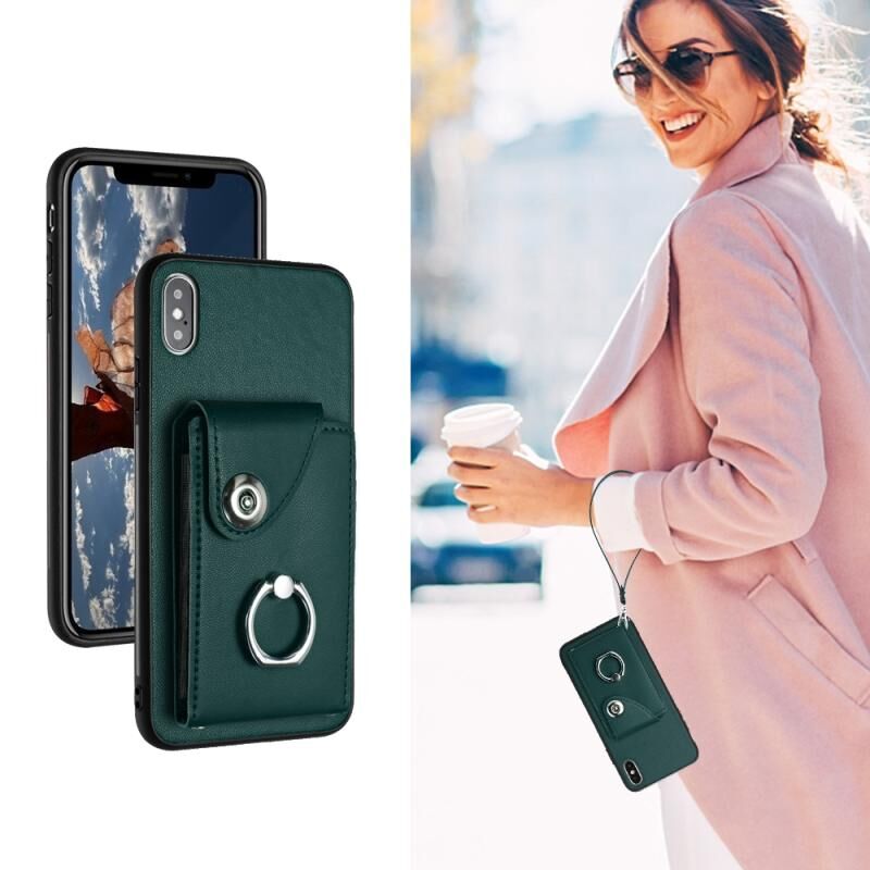 Θήκη τηλεφώνου για iPhone XS / X με κάρτες, δακτύλιο και λουρί από PU (Μπλε)