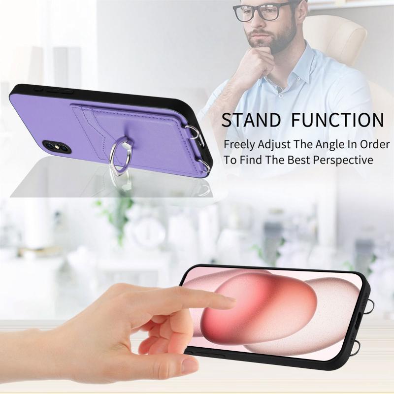 For iPhone XS / X R20 Ring Card Holder Phone Case(Purple)