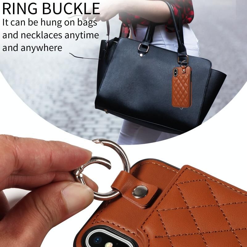 Θήκη τηλεφώνου με υφή ρόμβου και κοντό κορδόνι για iPhone XS / X (Λευκό)