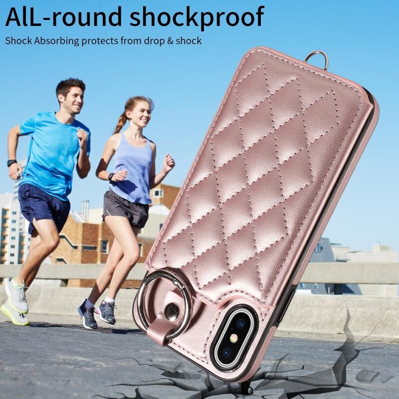Θήκη τηλεφώνου με υφή ρόμβου και κοντό κορδόνι για iPhone XS / X (Λευκό)