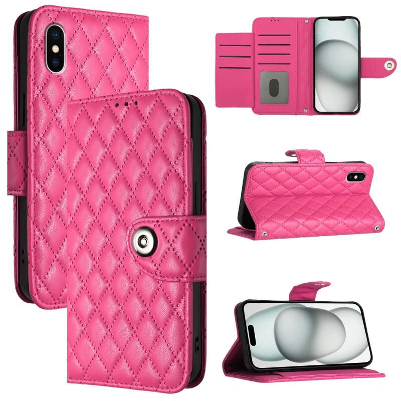 Θήκη τηλεφώνου από δέρμα με ανάγλυφη υφή ρόμβου για iPhone XS / X με κορδόνι (Μαύρο)