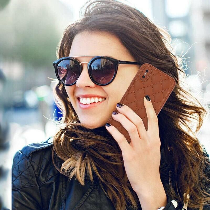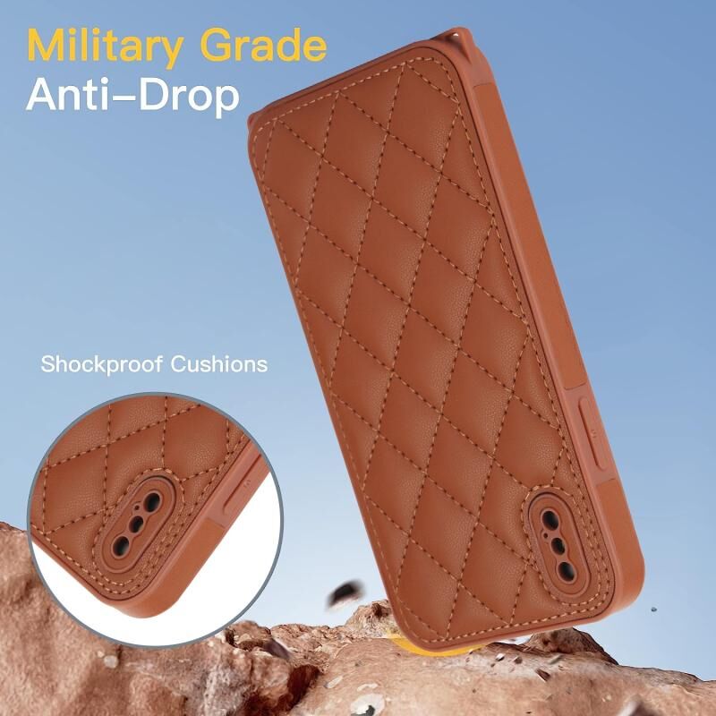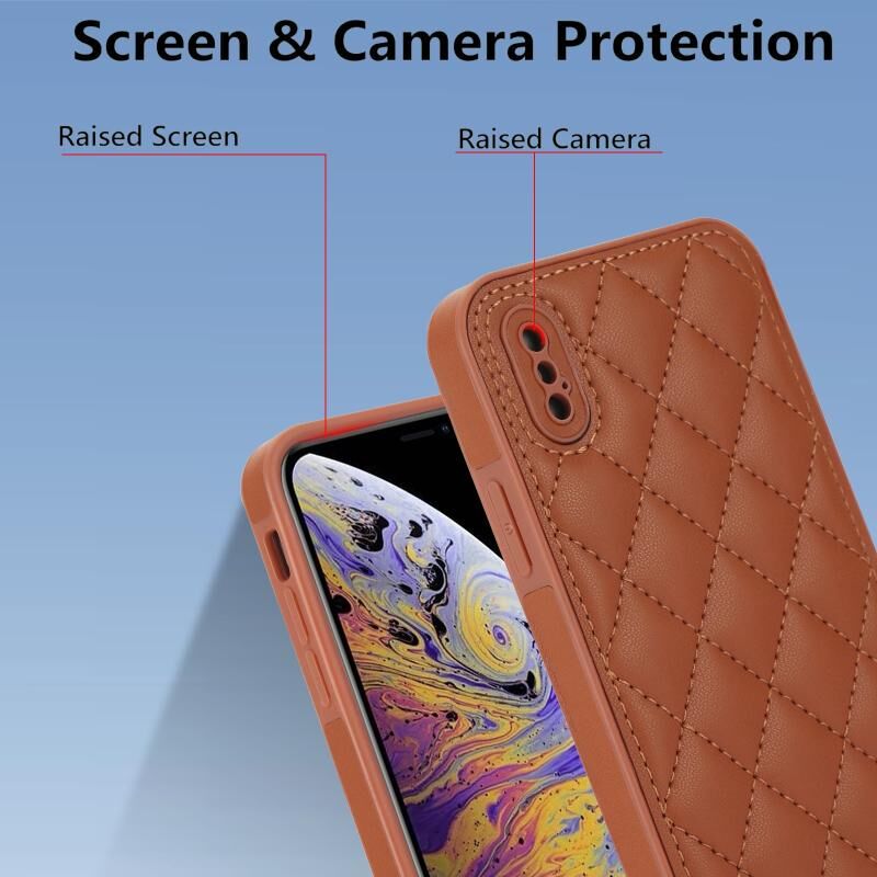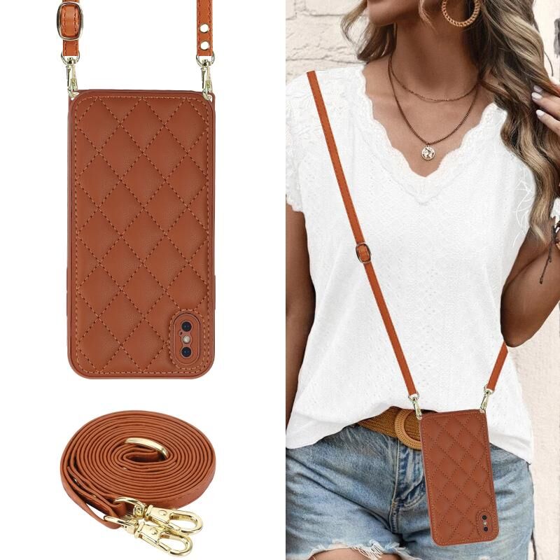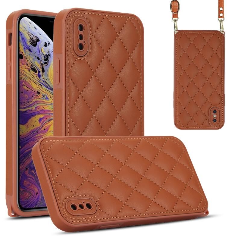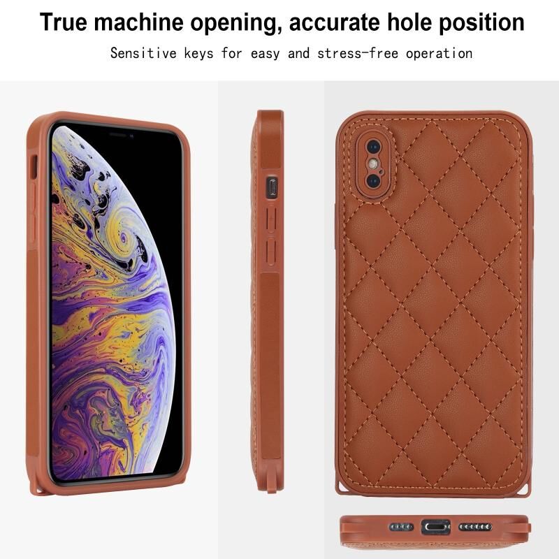 Θήκη τηλεφώνου με υφή ρόμβου για iPhone XS / X με διπλό κορδόνι (Καφέ)