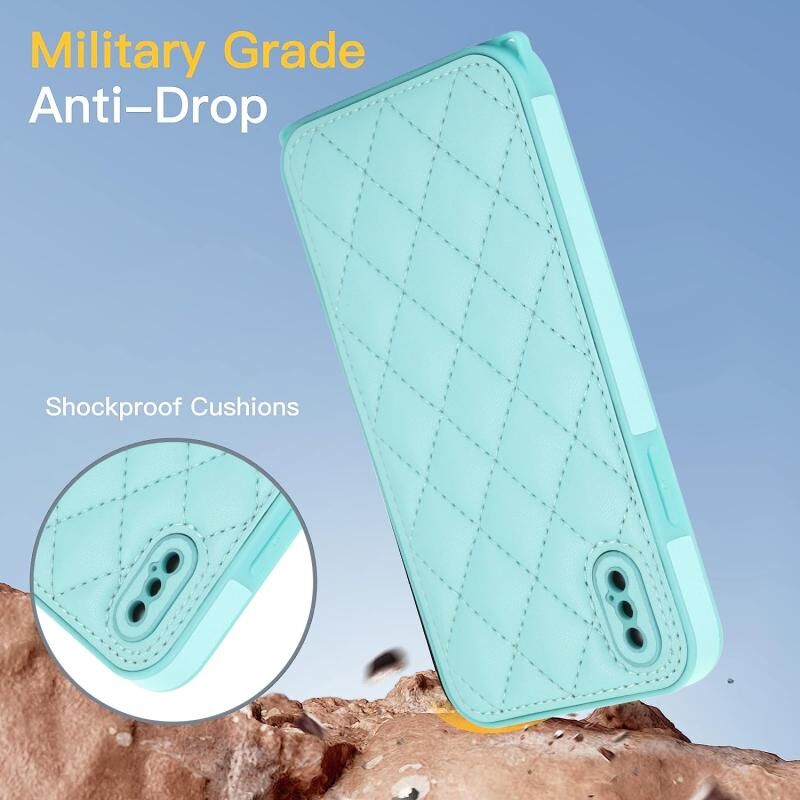 Θήκη τηλεφώνου με υφή ρόμβου για iPhone XS / X με διπλό κορδόνι (πράσινο)