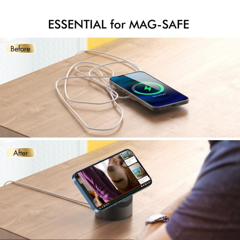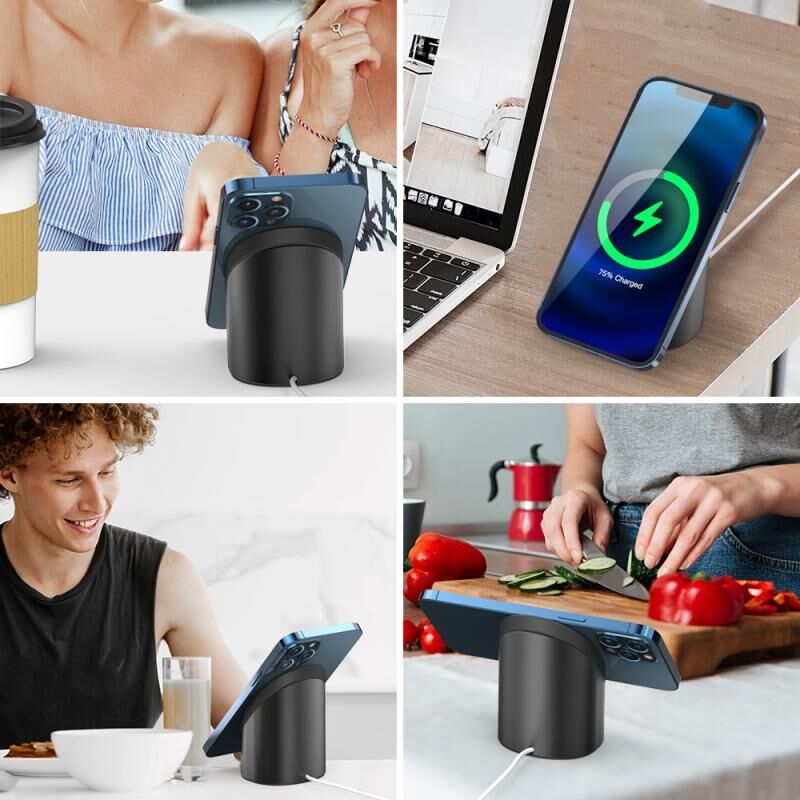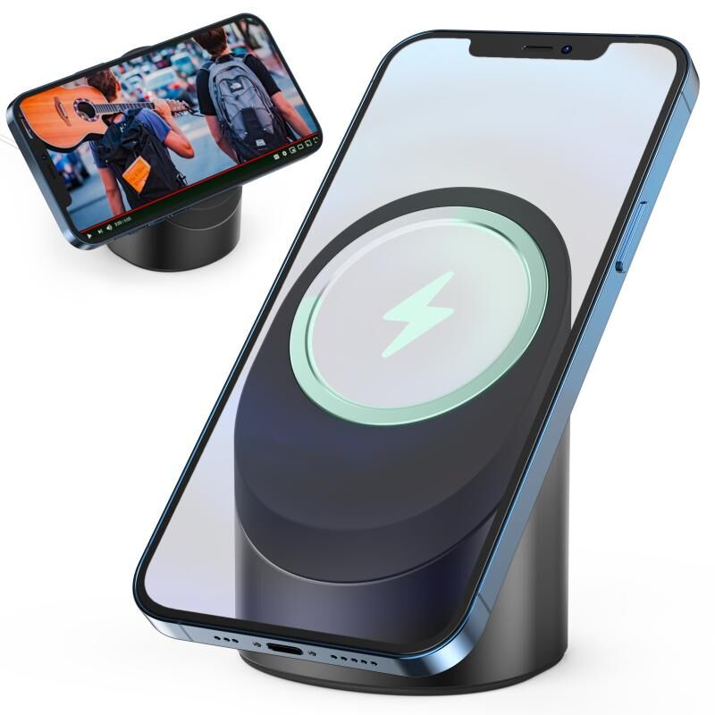 2. Βάση στήριξης κινητού τηλεφώνου για επιτραπέζια χρήση, παρέχει άνετη γωνία θέασης, ελευθερώνει τα χέρια σας κατά την παρακολούθηση βίντεο και υποστηρίζει φόρτιση MagSafe.