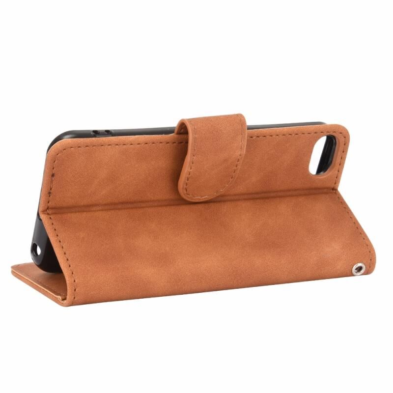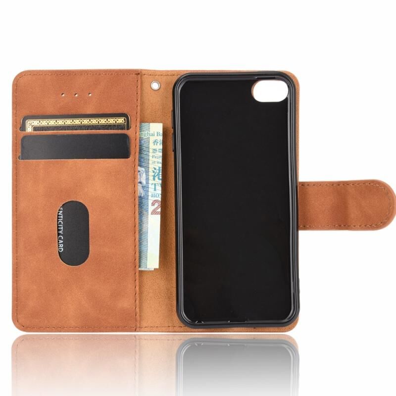 Θήκη για iPod Touch 6 & 5 με μαγνητικό κούμπωμα, οριζόντιο άνοιγμα, υφή δέρματος μοσχαριού από PU δέρμα σε μονόχρωμο χρώμα, με θήκη, υποδοχές καρτών και πορτοφόλι (Μαύρο)