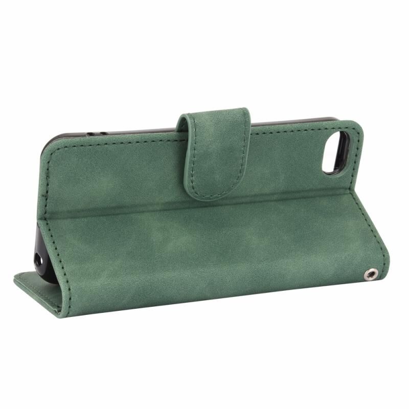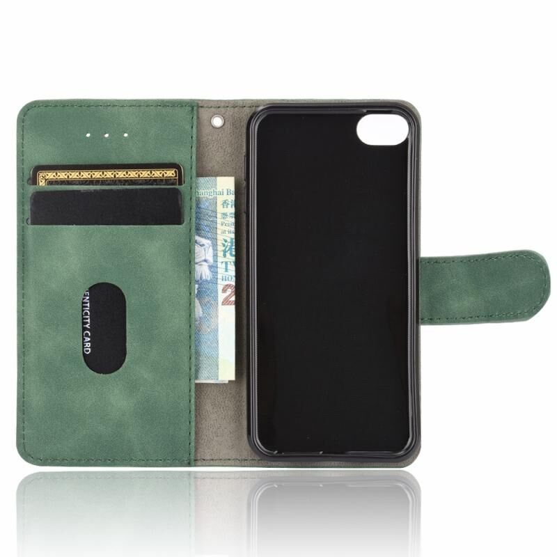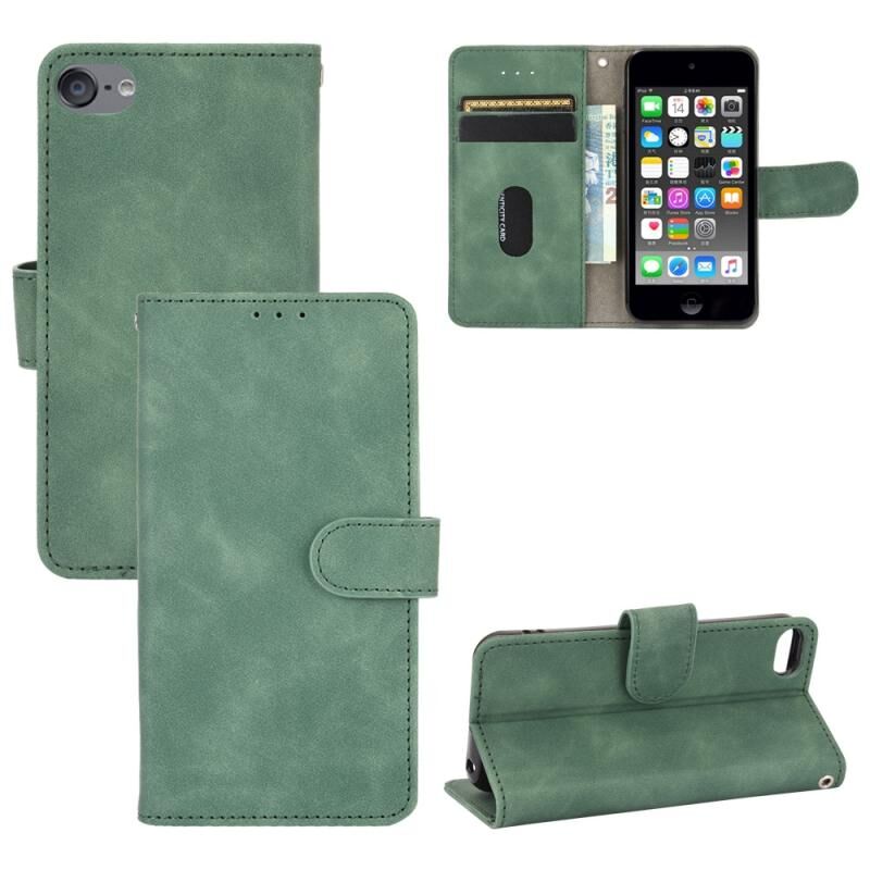 Θήκη για iPod Touch 6 & 5 με μαγνητικό κούμπωμα, οριζόντιο άνοιγμα, υφή δέρματος μοσχαριού από PU δέρμα σε μονόχρωμο χρώμα, με θήκη, υποδοχές καρτών και πορτοφόλι (Μαύρο)
